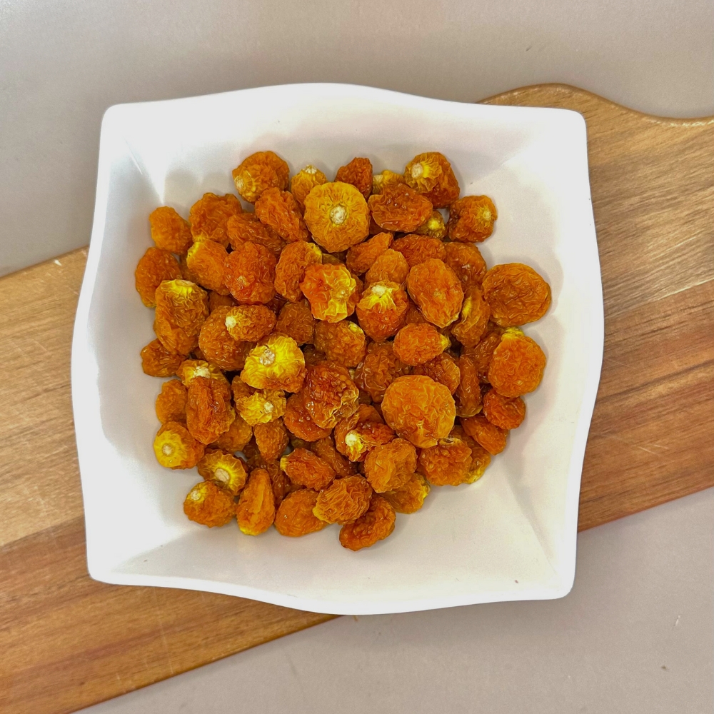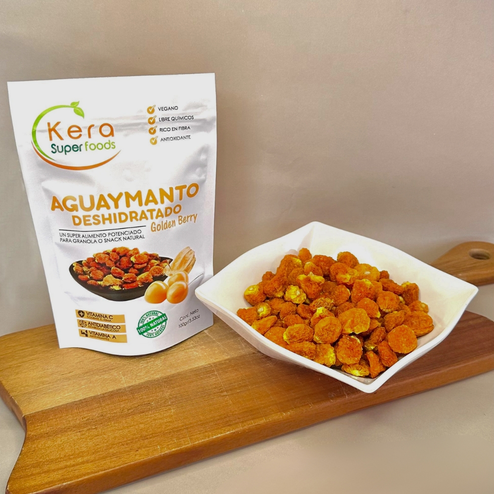 El Aguaymanto Deshidratado conserva el sabor exótico y ligeramente ácido de la fruta fresca, concentrando sus nutrientes en un formato práctico y saludable. Rico en antioxidantes, vitaminas y minerales, es ideal para fortalecer el organismo y disfrutar de un snack diferente y natural.