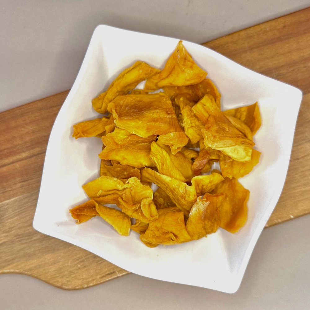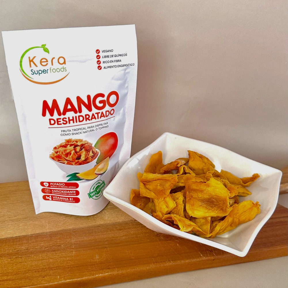 El Mango Deshidratado conserva la dulzura tropical y los nutrientes de la fruta fresca en un snack práctico y delicioso. Rico en antioxidantes, vitaminas y fibra, es ideal para disfrutar entre comidas o añadir a preparaciones saludables.